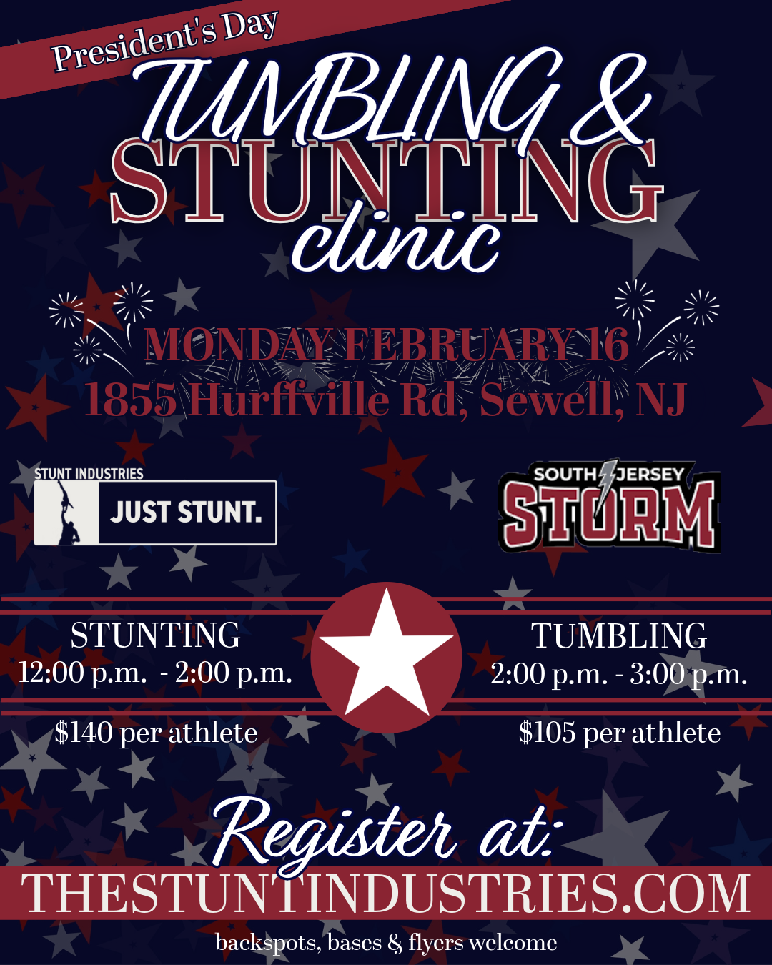 Join our exciting group and coed stunt clinics designed to enhance your skills and boost your confidence! Our experienced instructors will focus on refining your techniques and ensure that you gain the knowledge and support needed to excel. Whether you're a beginner or looking to advance your skills, our clinics offer a fun and encouraging environment for all. Sign up today and take stunting to the next level!